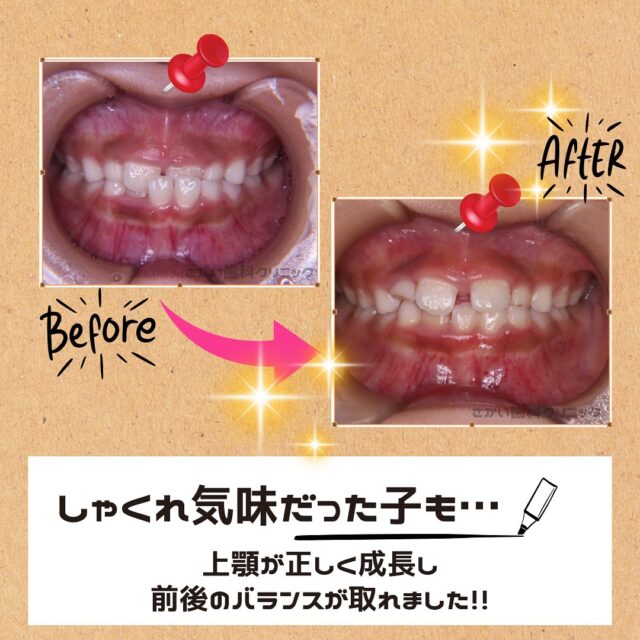 これにより、歯列だけでなく顎の正しい成長も促すことができ、顔つきにまでも影響を及ぼします。これこそが子どもの矯正のメリットです。